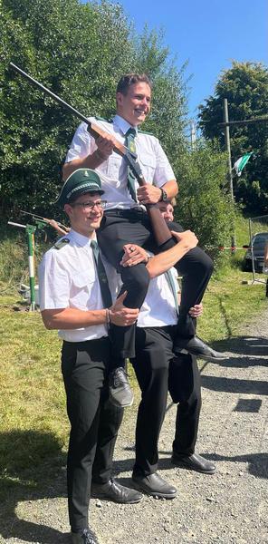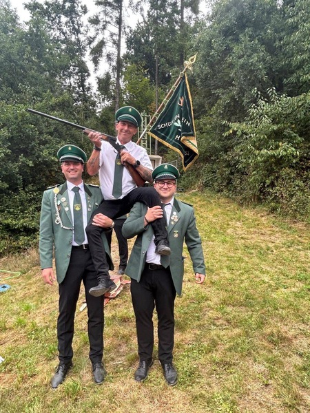 Die Jungschützen Toschi Bäumker, Sam Spaniel und Maximilian Ley haben